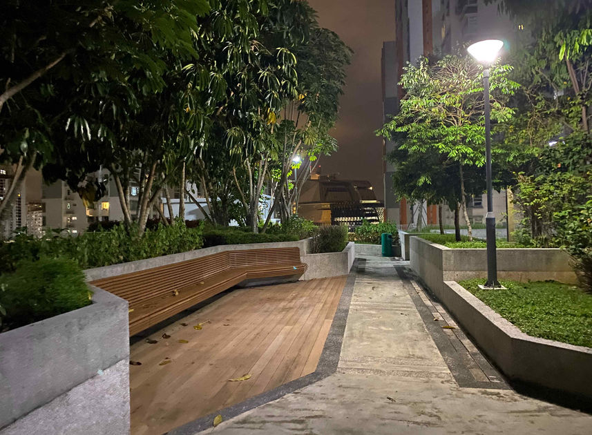 amenities: one supper table, a ton of benches, a lot of large gathering areas. award for largest capacity sky garden goes to 31a ghim moh link! i think you can squeeze like 2-3 church clusters here.