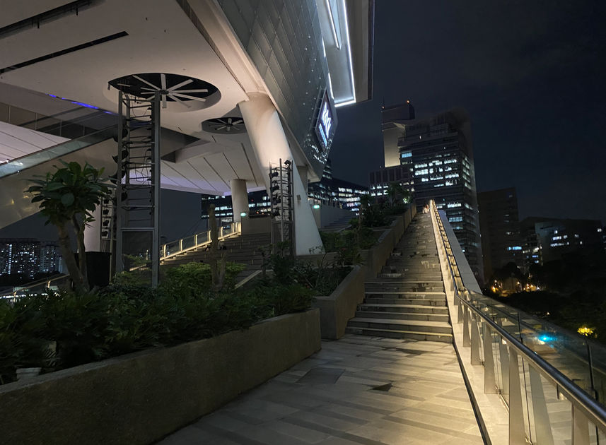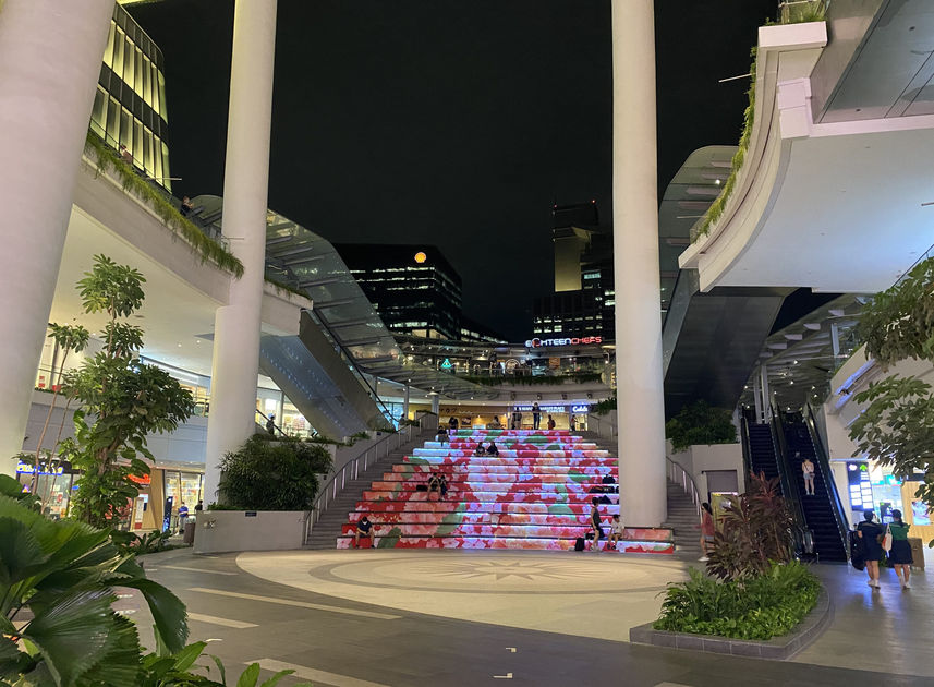 amenities: there're steps for you to use, but you'd sit on the floor if you're on the terrace. its no problem because people commonly tabao food up to these areas, to gather, eat n chill. you're literally inside a shopping mall lol
