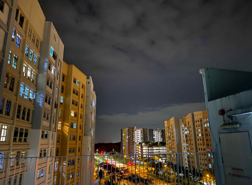 Some lights are switched off, which does help in the atmosphere. Surrounded by hdbs about 6 floors higher, but they’re some distance away thus helping with the open atmosphere. View is only okay, but everything else incl availability of seats make it a pretty good sky garden. Supperable due to a coffee shop downstairs.
