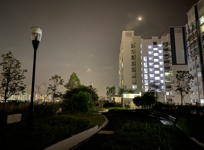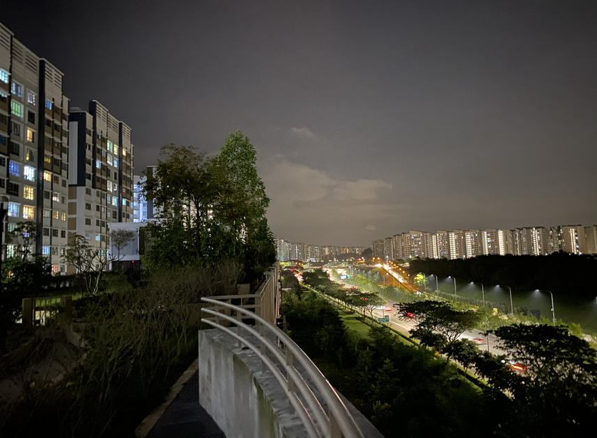 turned off lights, calming expressway vibes, towns in the distance and packed with amenities. one of the best sky gardens in punggol so far