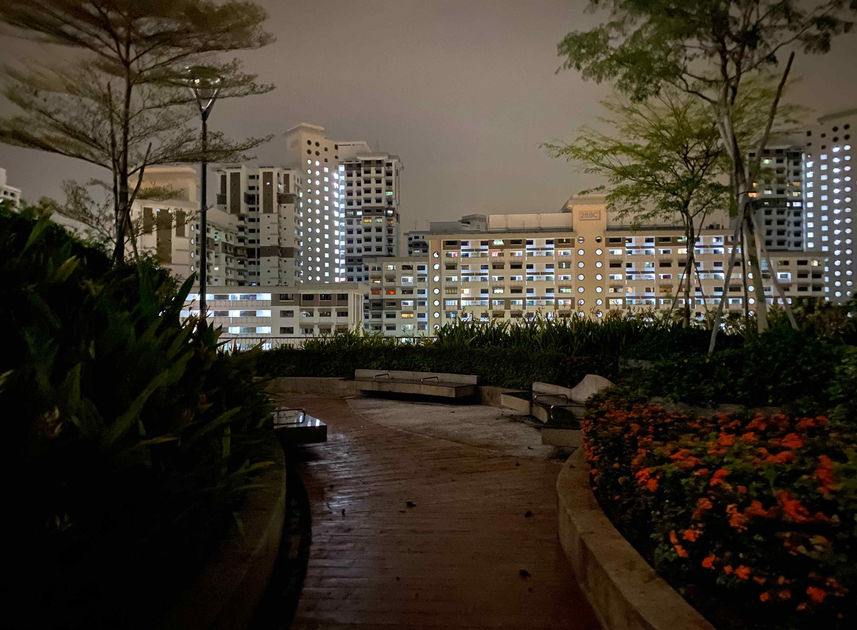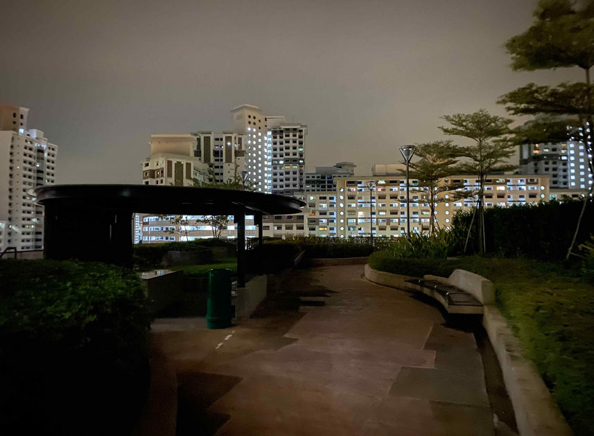 vibes: it's better without the lights! atmosphere is on point like that. it's dark, but not way too dark thanks to the lighting coming from the adjacent hdb block. it's slightly windy, and this place feels spacious and very open
