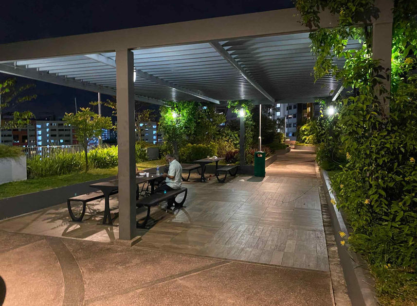 vibes: pretty quiet, slightly windy, lighting is good, it’s nice! ✨ material choices are quite varied too, layout is differnt from other sky gardens